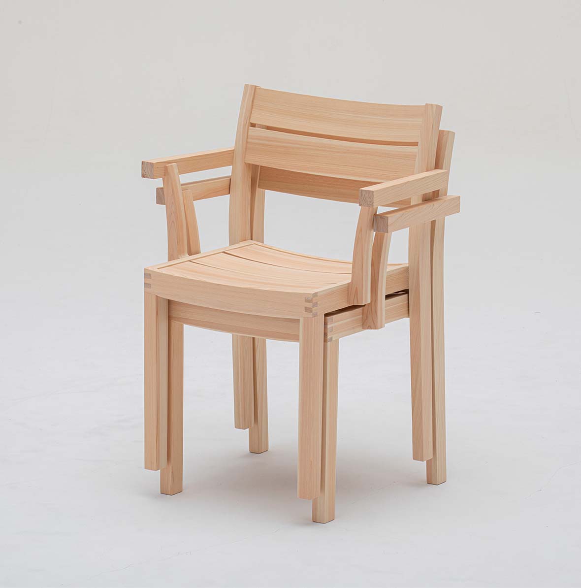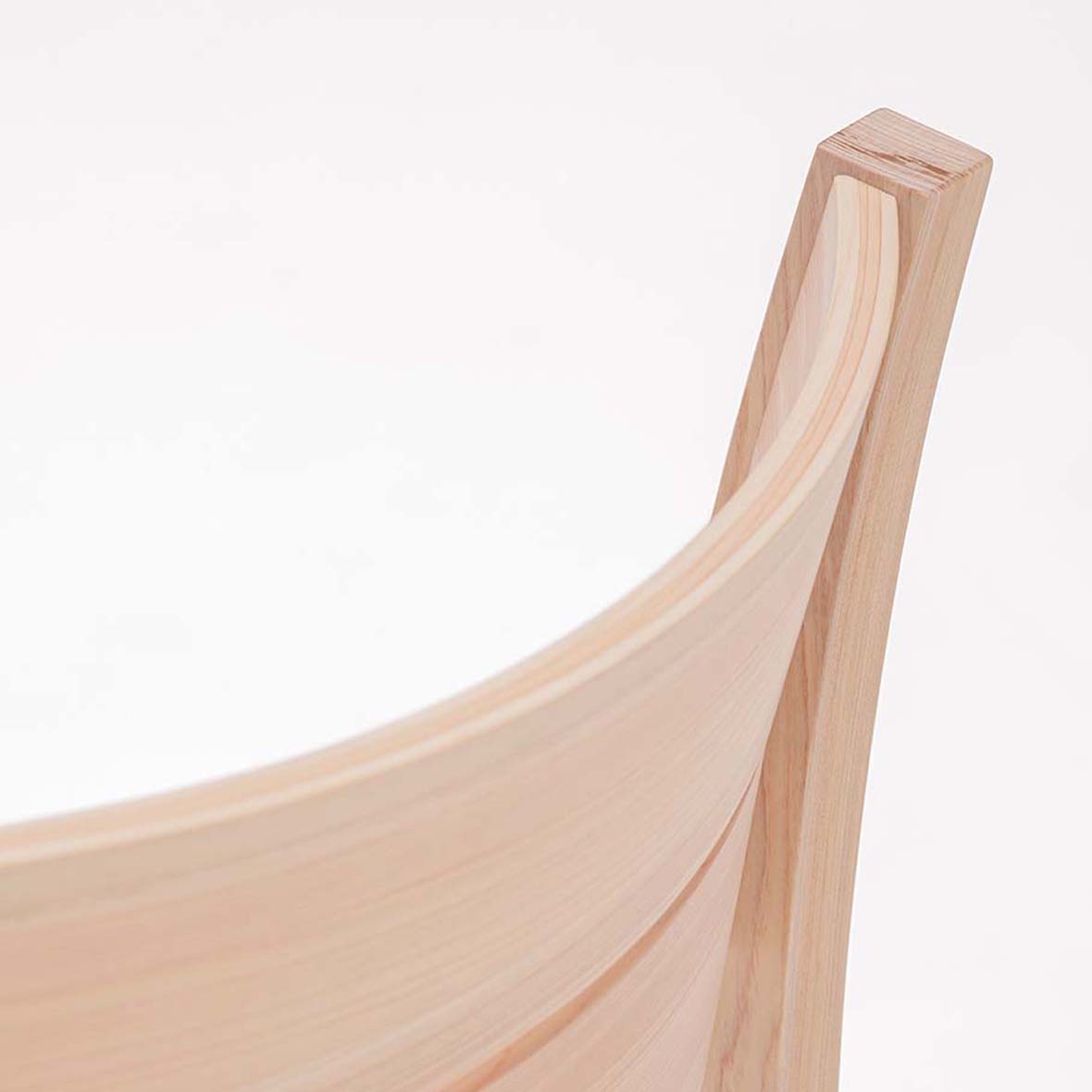 これは霰組(あられぐみ)といって、釘などを一切使わずに材を強固に接合し、箱型のものをつくるために使われる日本の伝統木工技術で、日本酒を飲む時に使う「枡」づくりには欠かせない組み手です。元来、計りとして日常の暮らしのなかで使われ、現在では祝い酒を飲むときや節分の豆まきなど、ハレの道具として存在する枡のように、この椅子が幅広いシーンに置かれることを想定しています。