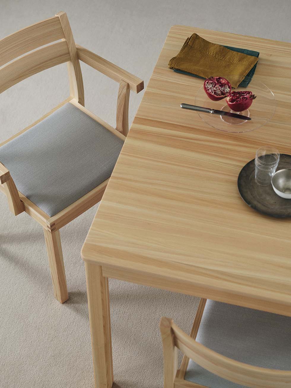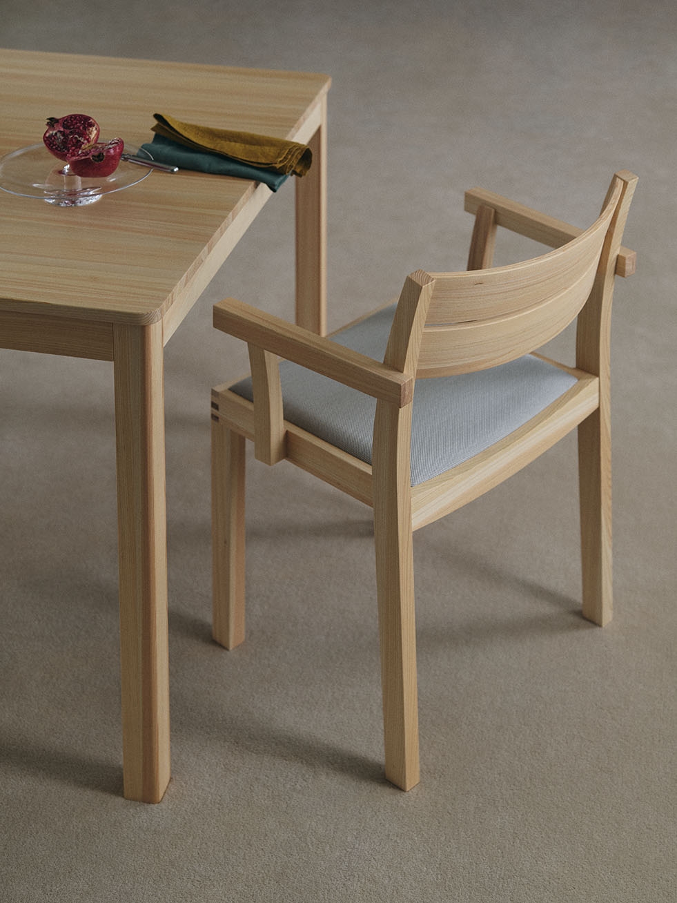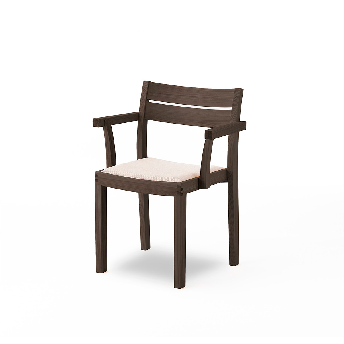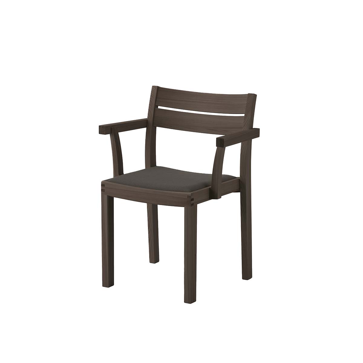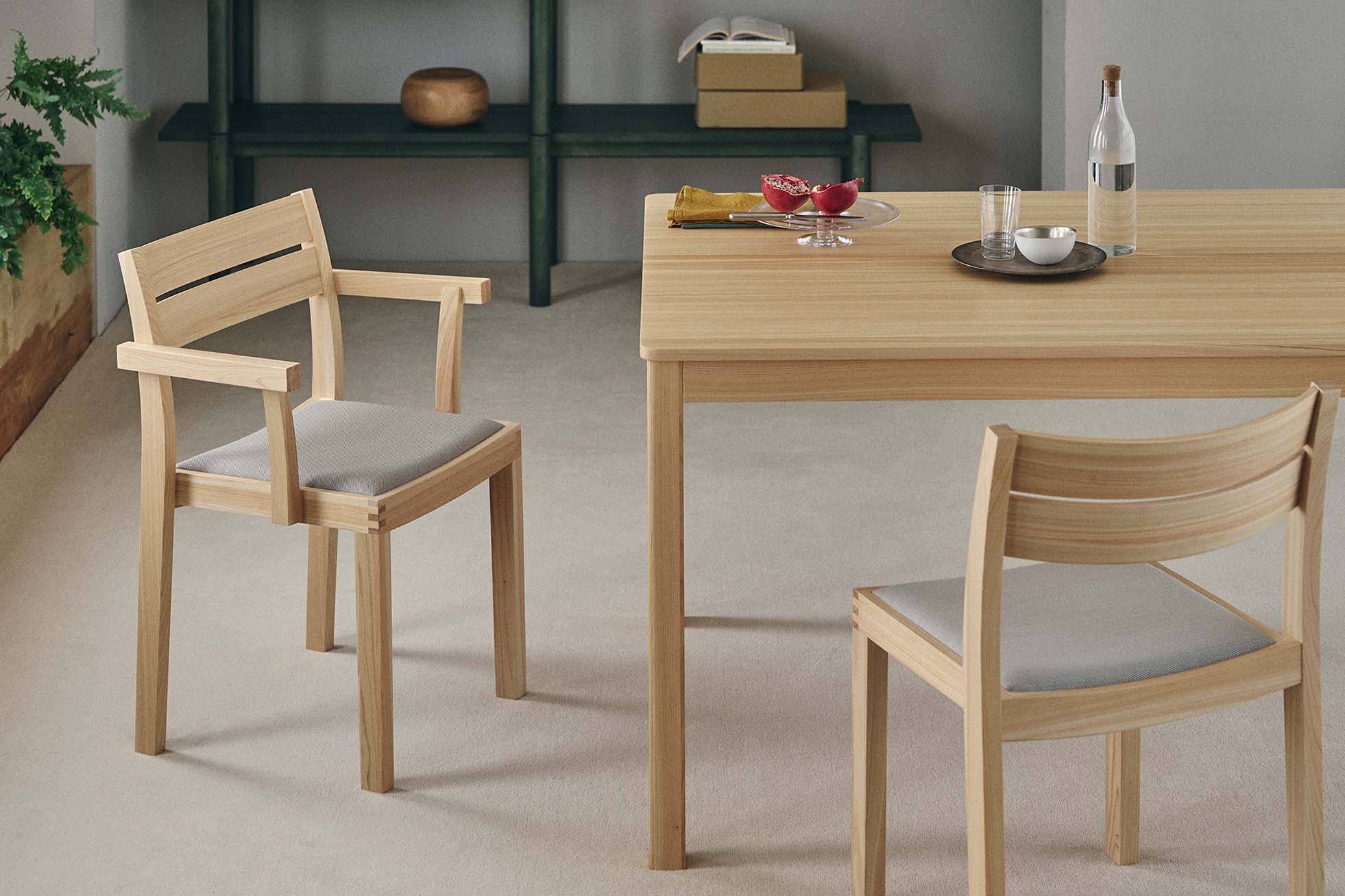 椅子のタイポロジーはそのままに、木目の美しさをフォルムに溶け込ませたWK Armchair 01 Pad。贅沢な木の質感を目や体で堪能できる同シリーズに、よりソフトな座り心地のパット付きタイプが加わりました。心地よいクッションが身体を優しく支え、よりリラックスした座り心地を提供します。人間工学に基づき設計された座面は、身体の負担を軽減。長時間でも快適に座ることが可能です。また接合部には日本の伝統的な木工技術「霰組(あられぐみ)」が用いられ、この椅子にアイコニックで存在感のある表情を作り出しています。美しさと実用性を兼ね備えたフォルムは、カジュアルからフォーマルなシーンまで、人を惹きつける心地よい空間を作り上げます。