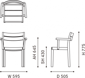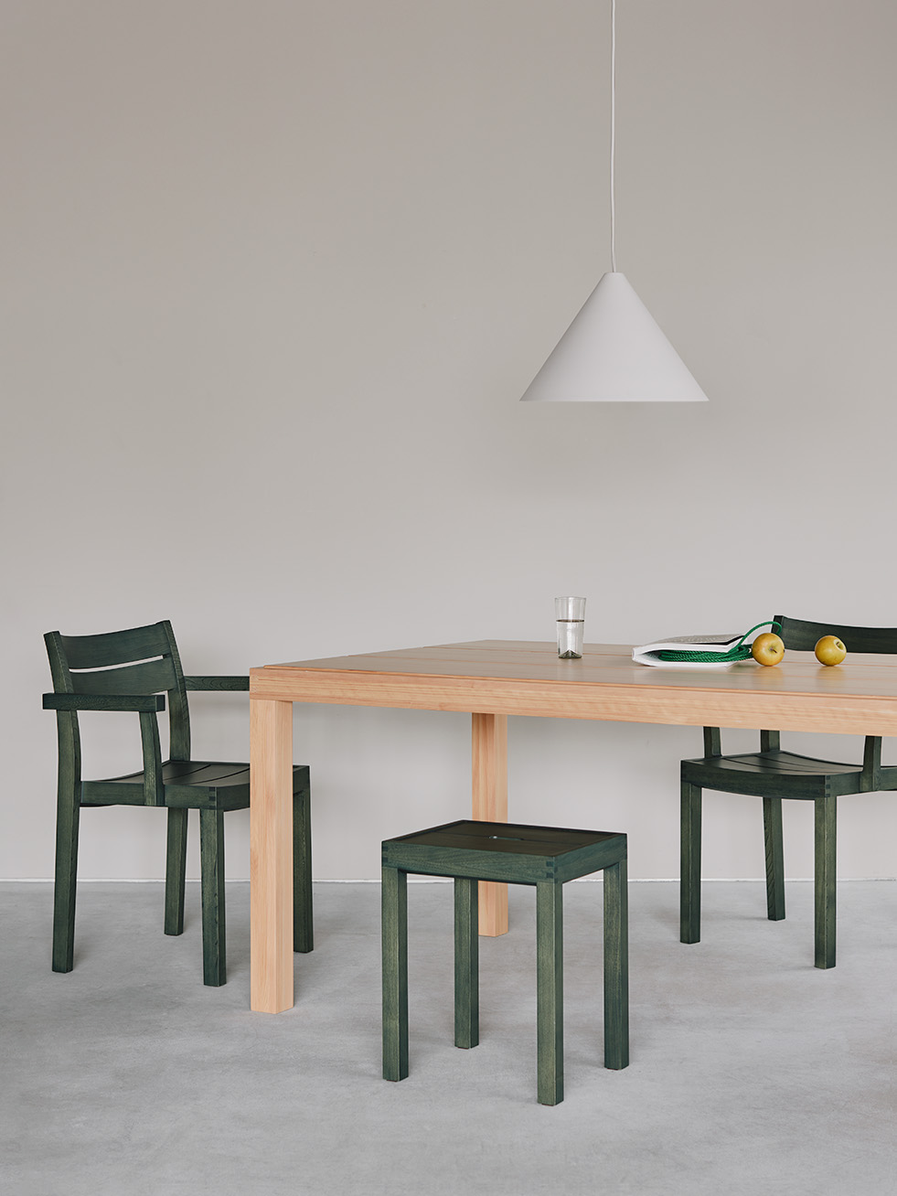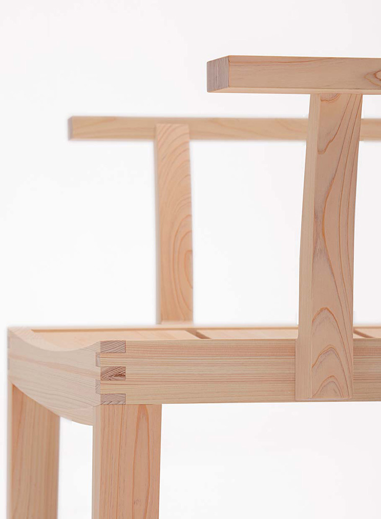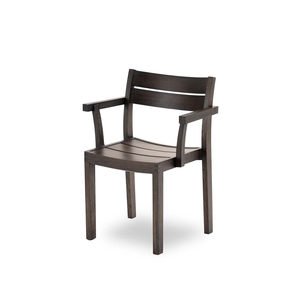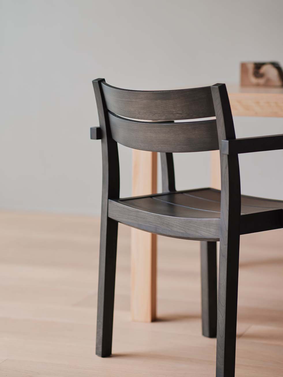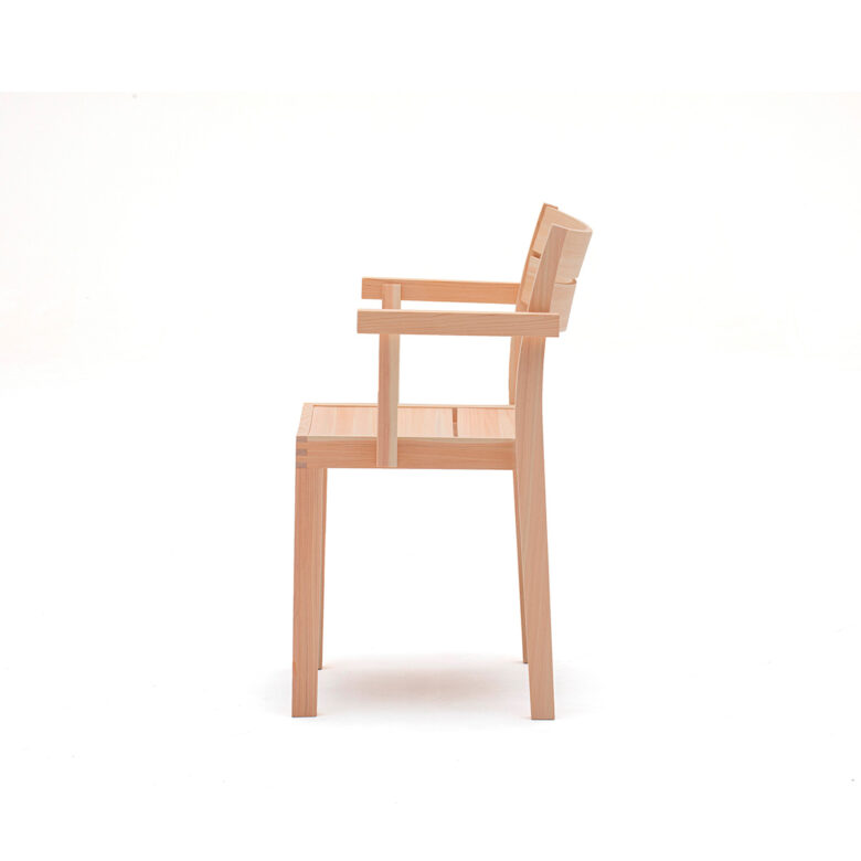 椅子のタイポロジーはそのままに、木目の美しさをフォルムに溶け込ませたWK Armchair 01。贅沢な木の質感を目や体で堪能できる1脚です。木材の接合部には枡にみられる「霰組(あられぐみ)」など、日本の伝統的な木工技術が用いられ、この椅子にアイコニックな表情を与えています。人間工学に基づき設計された緩やかな曲線を描く座面は、着座時の体の可動域や座り心地を考慮し設計され、長時間でも快適にご利用いただけます。椅子を構成する全ての部材が適切な機能を帯びた、MASを代表する1脚です。軽量で3脚まで積み重ねられます。
