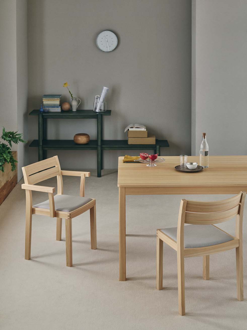 木目の美しさをフォルムに溶け込ませ、贅沢な木の質感を堪能できるWK Chair 01 Pad。ソフトな座り心地で、長時間でも快適に座ることが可能です。木材の接合部には枡にみられる「霰組(あられぐみ)」など、日本の伝統的な木工技術が用いられ、この椅子にアイコニックな表情を与えています。人間工学に基づき設計された座面が身体をしっかりと支え、様々な姿勢を快適にサポート。ダイニングはもちろん、カフェやオフィスなど、多彩なインテリアシーンに調和するフレンドリーな1脚です。