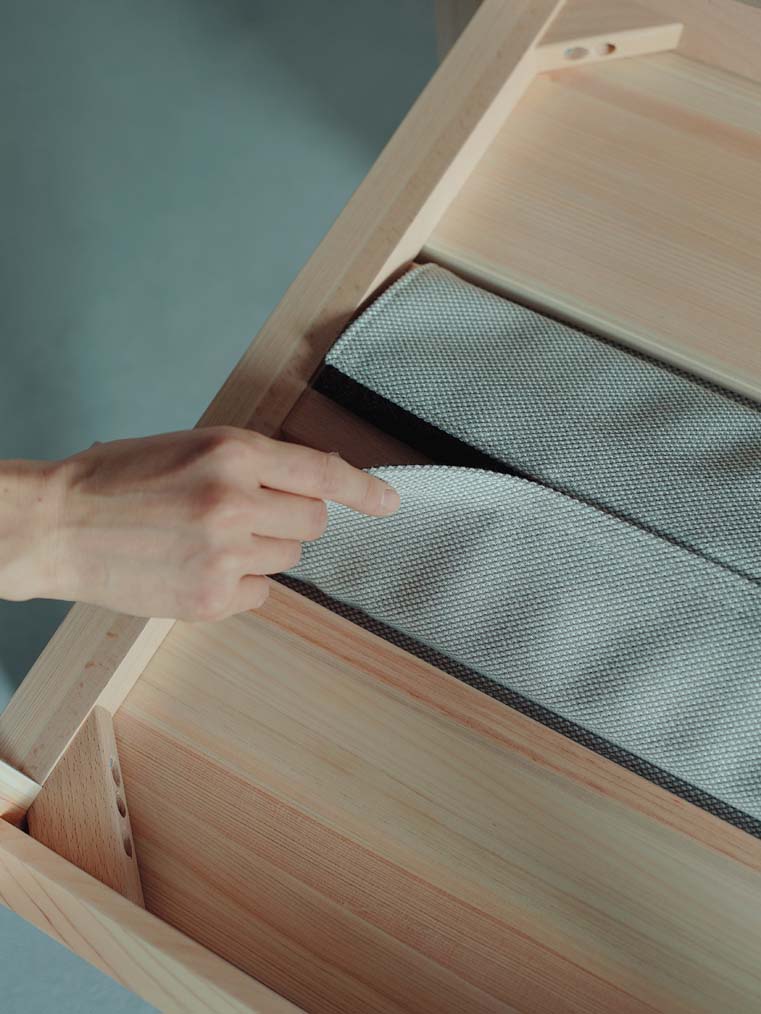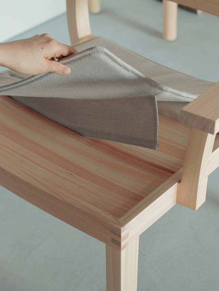 WK Lounge chair 01用にデザインされた専用クッション。張地には、デンマークのテキスタイルメーカークヴァドラ社のファブリックを採用。耐摩耗性に優れた高性能なクッションです。カラーは各々の2色からお選びいただくことができ、チェア座面の隙間を使って、マジックテープで簡単に着脱することが可能です。